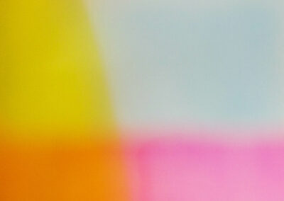 Le flou dématérialise les traits de pinceaux et rend la couleur fluide et éphémère, en constante transformation.