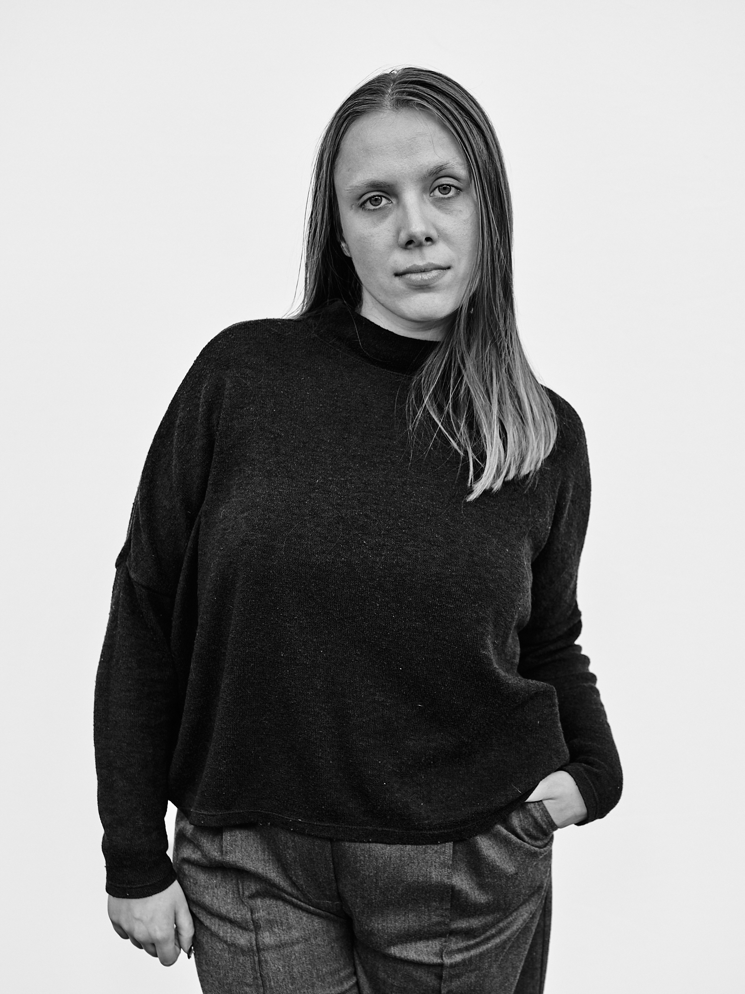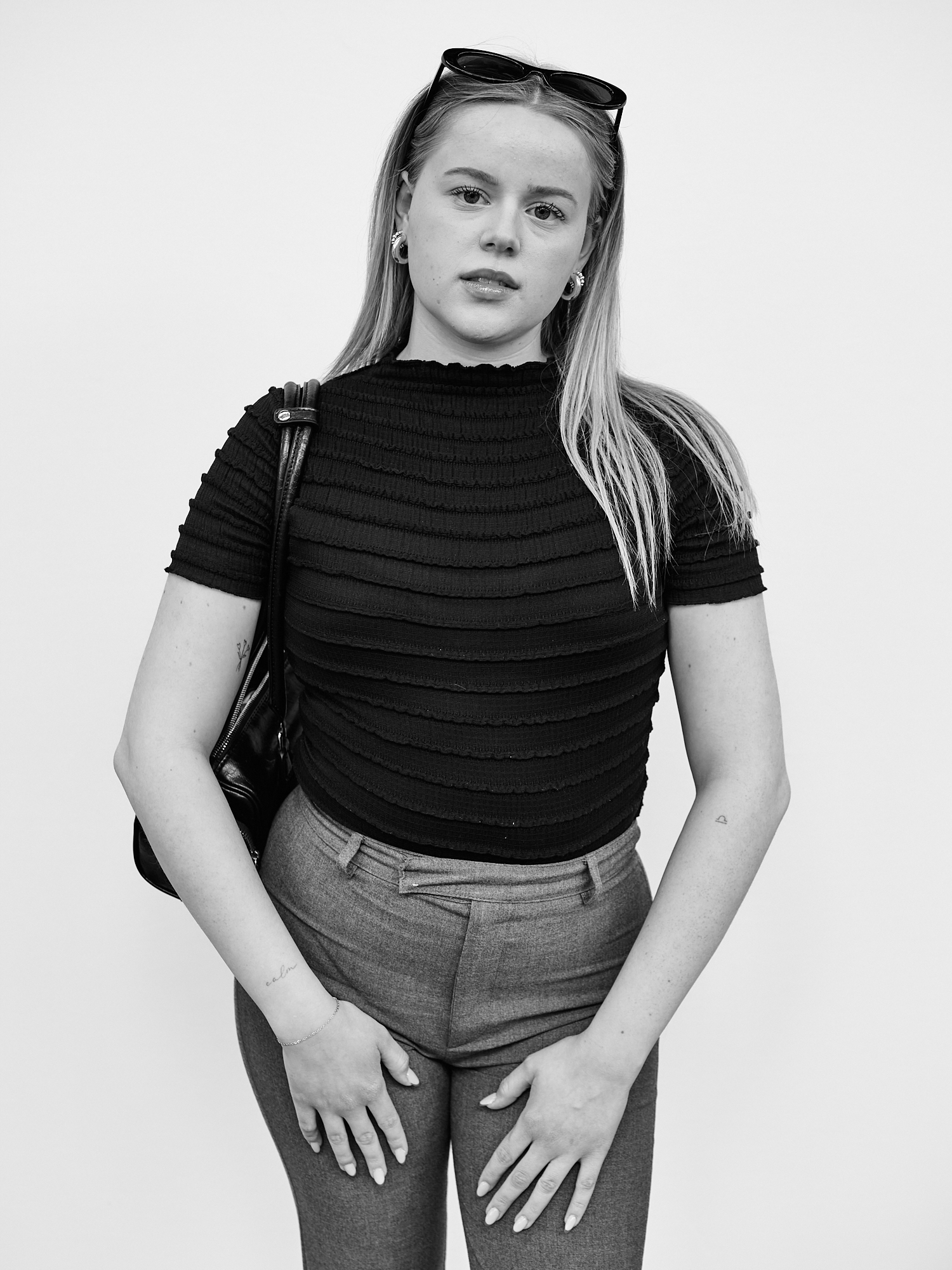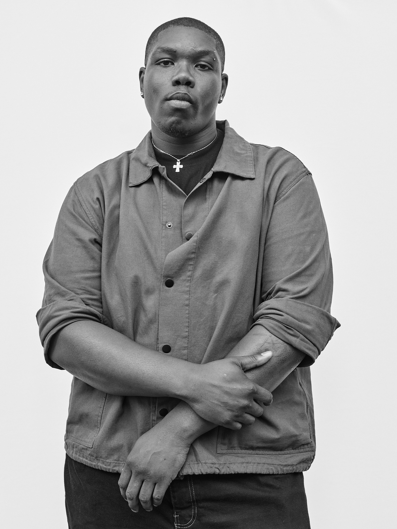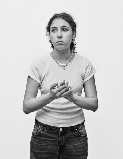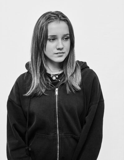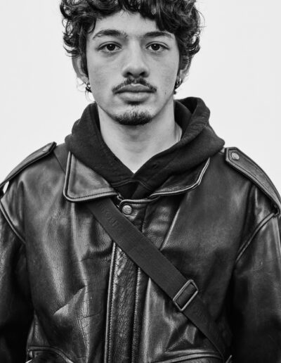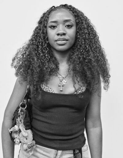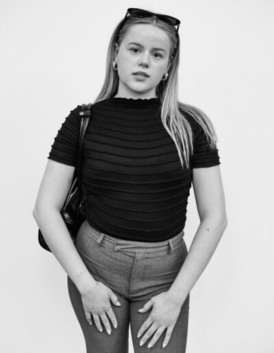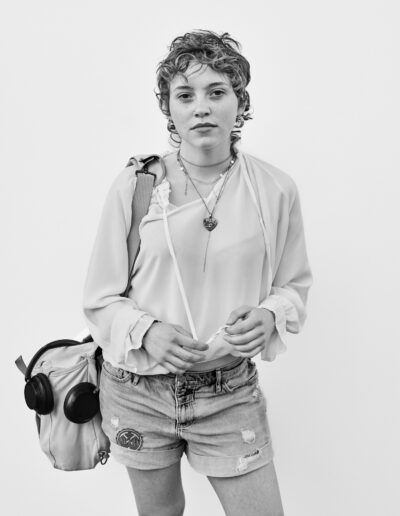 J’installe mon dispositif dans un lieu de passage : un simple fond blanc d’environ deux mètres sur deux, un appareil moyen format sur pied. J’observe le flux des piétons aux allures hétéroclites et guette une ouverture. Durant les quelques minutes de la séance, les indications sont sommaires; ne pas se dissimuler derrière un sourire, juste être là. Pour autant, chacun vient avec ses propres projections, donne ce qu’il peut. Je m’adapte, c’est aussi leur moment.